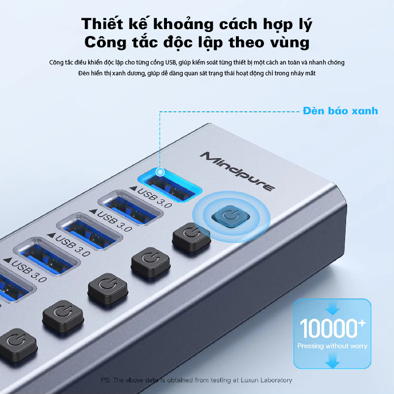 Cấu hình Bộ chia 7 cổng USB3.0 Mindpure US029
