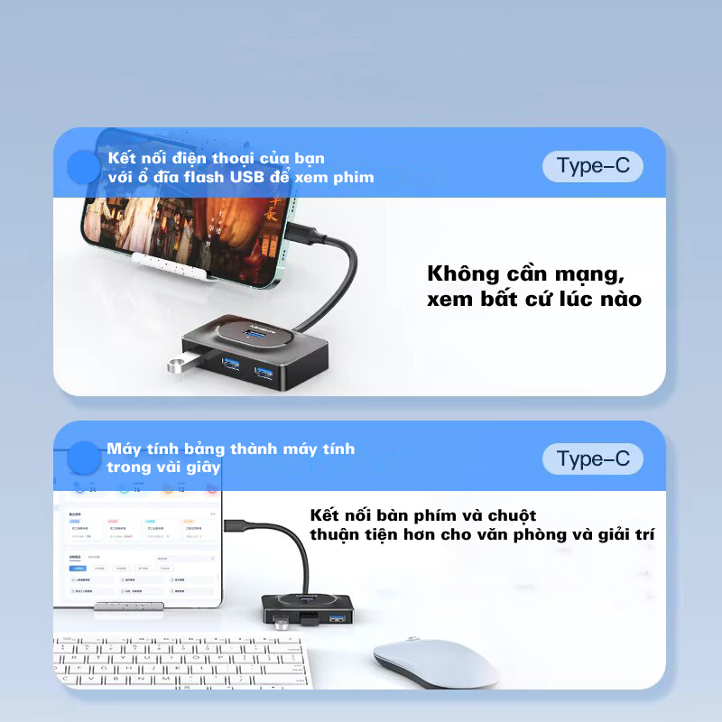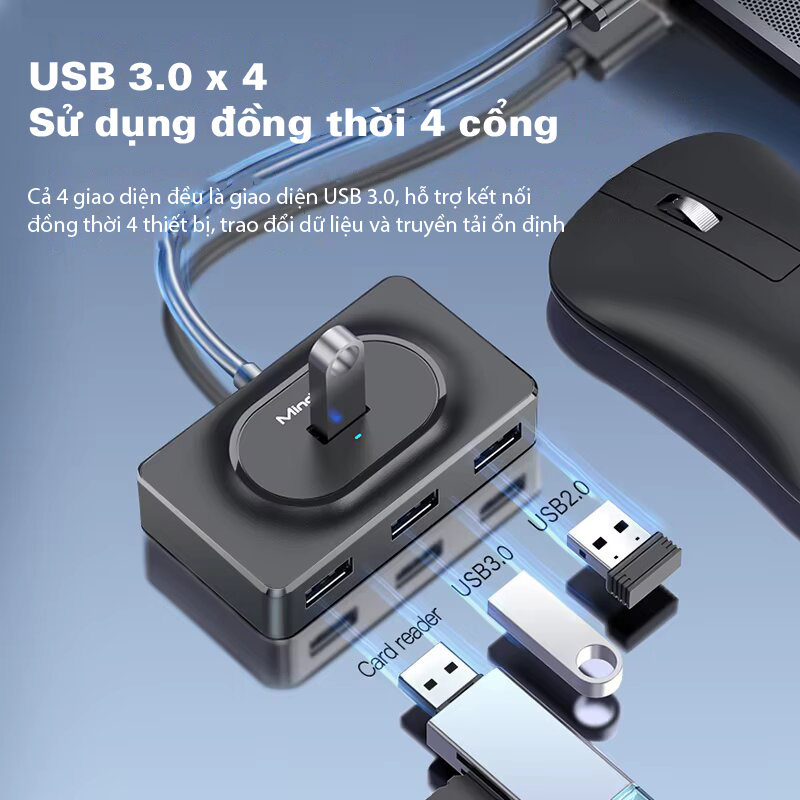 Bộ chia USB Type-C sang 4 cổng USB3.0 Mindpure US021 là lựa chọn hoàn hảo để mở rộng kết nối cho laptop, PC và các thiết bị cần thêm cổng USB. Với 4 cổng USB 3.0 và tốc độ truyền tải lên đến 300MB/s, di chuyển tệp nhanh chóng, Mindpure US021 đảm bảo công việc không bị gián đoạn, giúp nâng cao hiệu suất làm việc và tối ưu hóa trải nghiệm kết nối thiết bị.