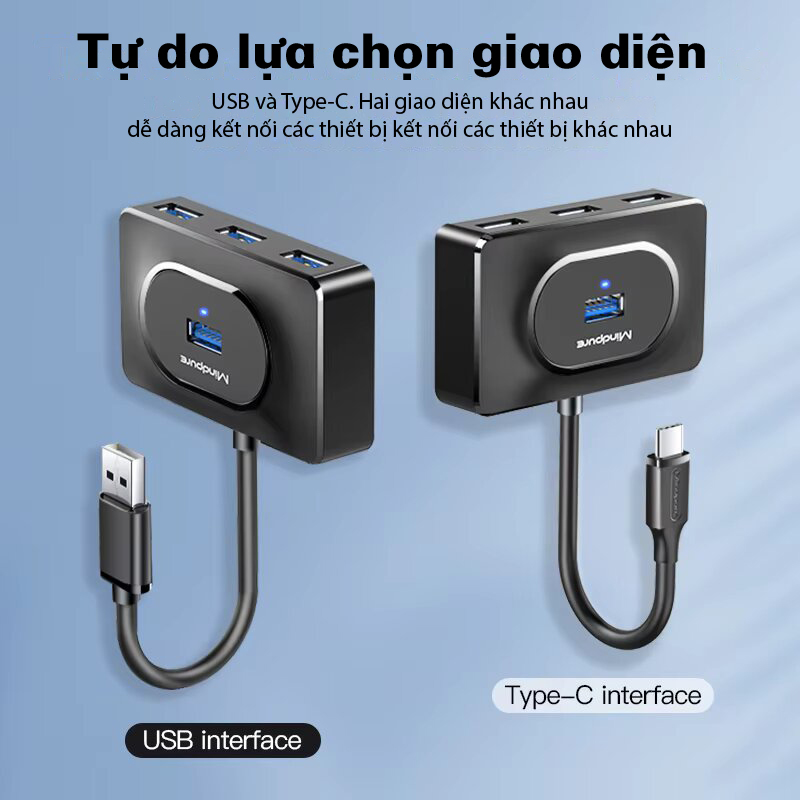 Bộ chia USB Type-C sang 4 cổng USB3.0 Mindpure US023