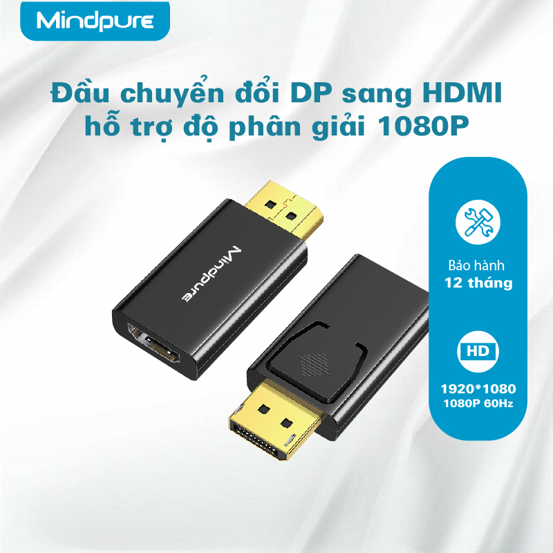 Bộ chuyển đổi DisplayPort sang HDMI Mindpure AD041 giúp kết nối dễ dàng từ máy tính cổng DP đến màn hình HDMI, hỗ trợ độ phân giải Full HD 1080p. Tích hợp chip LongXun LT3361, giao diện mạ vàng cho tín hiệu ổn định, đồng bộ hình ảnh và âm thanh. Thiết kế nhỏ gọn, vỏ ABS bền chắc, tuân thủ tiêu chuẩn RoHS, cắm là dùng, không cần cài đặt trình điều khiển.