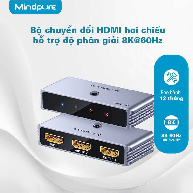 Mindpure SW003 là bộ chuyển mạch HDMI 2 chiều cao cấp, hỗ trợ độ phân giải siêu nét 8K@60Hz, 4K@120Hz, âm thanh Dolby và DTS 7.1 sống động. Thiết kế vỏ hợp kim nhôm sang trọng, cổng mạ niken bền bỉ, hoạt động không cần cấp nguồn. Dễ dàng chuyển đổi giữa hai thiết bị hoặc hai màn hình chỉ với một nút bấm – lý tưởng cho giải trí, trình chiếu và làm việc chuyên nghiệp.