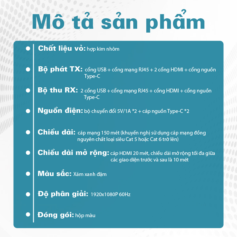 Cấu hình Bộ mở rộng HDMI KVM qua cáp mạng 150m Mindpure SW104