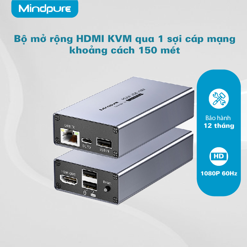 Bộ mở rộng HDMI KVM qua cáp mạng 150m Mindpure SW104 cho phép truyền tín hiệu hình ảnh, âm thanh và điều khiển bàn phím chuột từ xa qua cáp mạng. Hỗ trợ độ phân giải Full HD 1080P, loop-out giám sát cục bộ, chống nhiễu, điều chỉnh EDID tự động. Thiết kế vỏ hợp kim nhôm cao cấp, cắm là chạy, phù hợp cho phòng máy chủ, giám sát an ninh, văn phòng và các môi trường đòi hỏi truyền tín hiệu xa, ổn định.