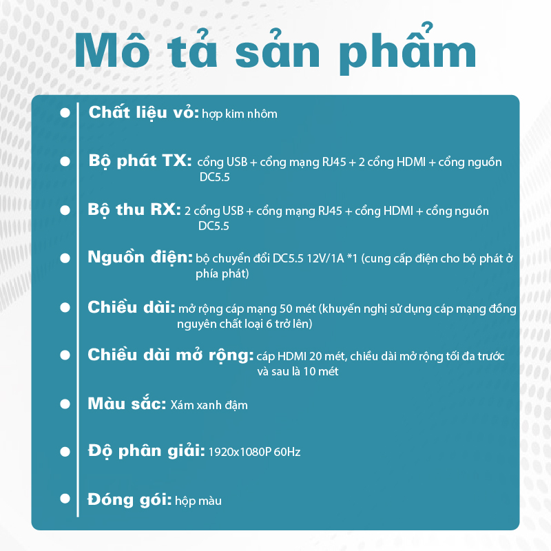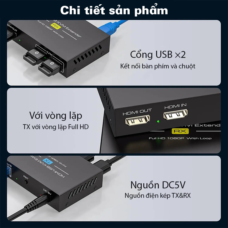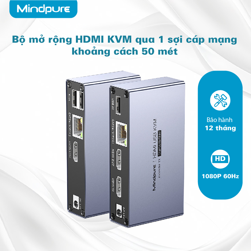 Cấu hình Bộ mở rộng HDMI KVM qua cáp mạng 50m Mindpure SW103