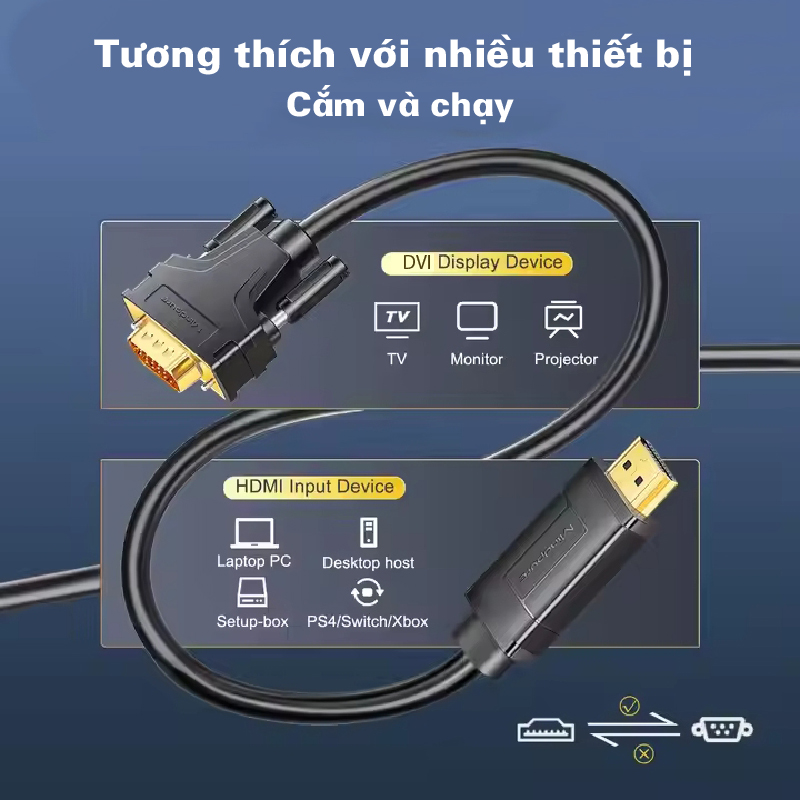 Cáp chuyển đổi HDMI to DVI Mindpure AD001 là giải pháp lý tưởng cho nhu cầu kết nối hai chiều giữa HDMI và DVI với chất lượng truyền tải ổn định. Sản phẩm sử dụng lõi đồng không oxy 19+1, đầu cắm mạ vàng và công nghệ chống nhiễu đa lớp, đảm bảo hình ảnh sắc nét. Vỏ PVC bền bỉ cùng vòng từ chống nhiễu (trên 10m) giúp duy trì hiệu suất cao ngay cả trên khoảng cách xa.