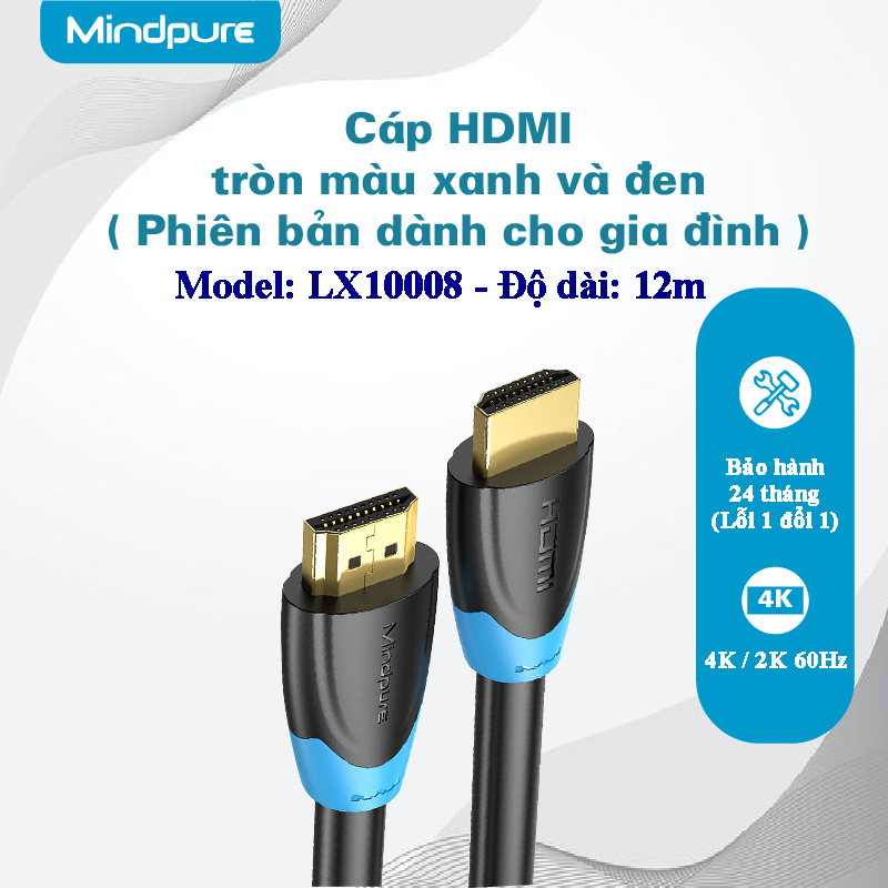 Cấu hình Cáp HDMI Mindpure LX10008 12m chuẩn 2.0 hỗ trợ 4K/2K 60Hz
