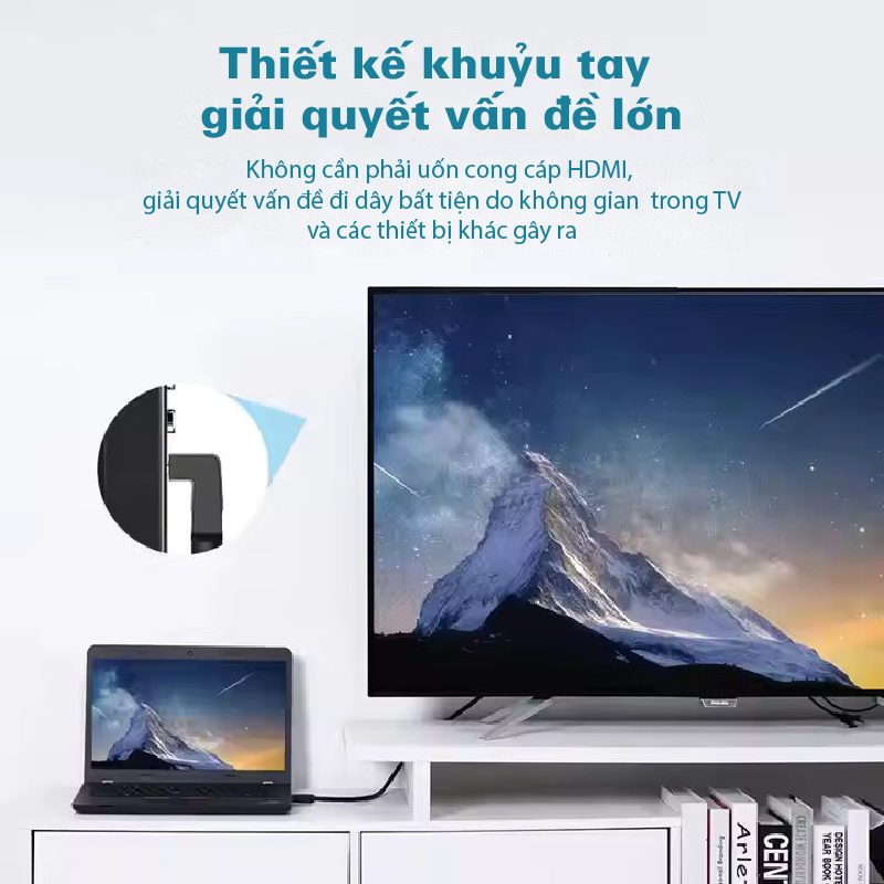 Góc cong lên – Dành cho các thiết bị có cổng HDMI hướng xuống hoặc ngang.