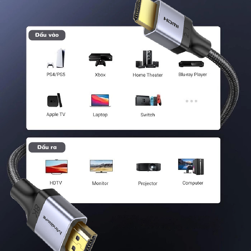 Cấu hình Cáp HDMI V2.1 sợi quang học 8K Mindpure HD009