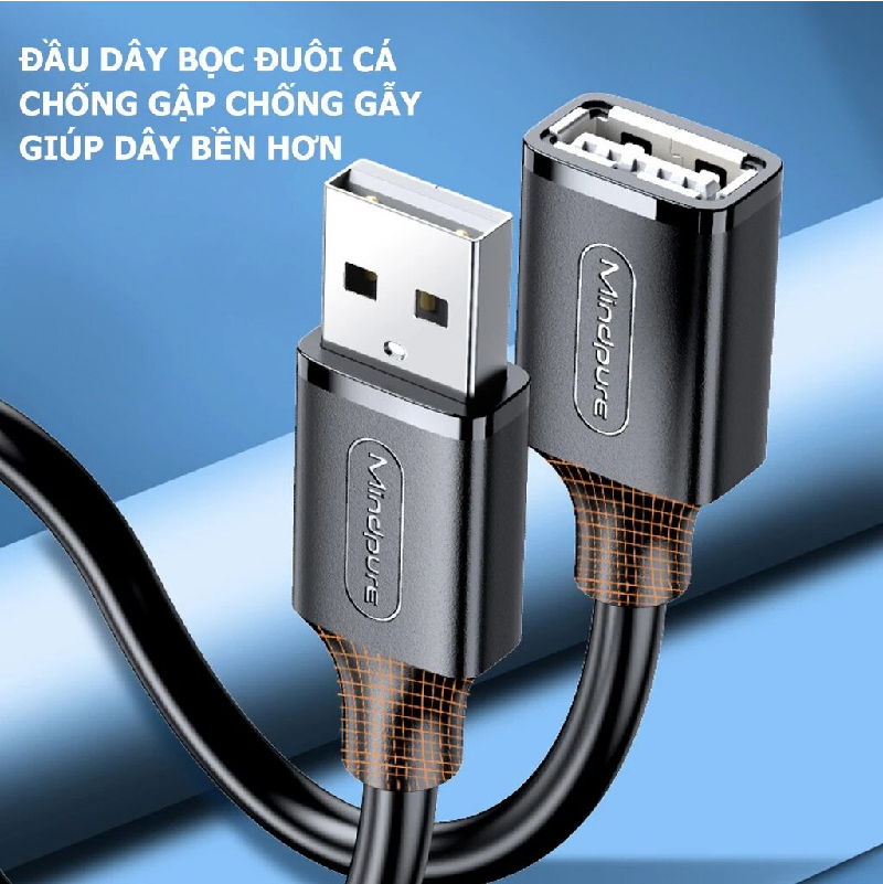 Cáp nối dài USB 2.0 Mindpure US003 male to female là một loại cáp được thiết kế để kéo dài kết nối USB 2.0 giữa các thiết bị. Dưới đây là tổng quan về sản phẩm này: