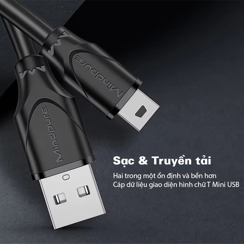 Cáp USB 2.0 to USB Mini Mindpure US004 là giải pháp kết nối dữ liệu chất lượng cao, tương thích với nhiều thiết bị như ổ cứng di động, camera hành trình, MP3/MP4, máy ảnh, máy quay phim, radio và loa Bluetooth. Với lưới bện 64 sợi mã hóa và thiết kế chống nhiễu hai lớp, cáp đảm bảo truyền dữ liệu ổn định và an toàn. Sản phẩm được làm từ vật liệu thân thiện với môi trường, đạt tiêu chuẩn RoHS 2.0, có độ bền cao, chịu lực tốt, khó đứt gãy, đáp ứng nhu cầu sử dụng lâu dài.
