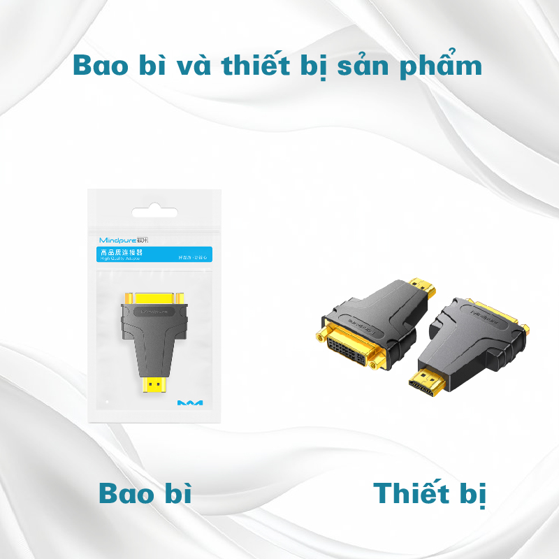 Đầu chuyển HDMI sang DVI Mindpure AD048 hỗ trợ kết nối hai chiều giữa thiết bị HDMI và DVI 24+5, độ phân giải Full HD 1080P@60Hz. Giao diện mạ vàng truyền tín hiệu ổn định, đồng bộ hình ảnh và âm thanh. Đầu DVI có vít cố định chắc chắn, vỏ PVC đạt chuẩn RoHS, an toàn và bền bỉ. Đóng gói 50 cái/túi, phù hợp cho thi công và phân phối.