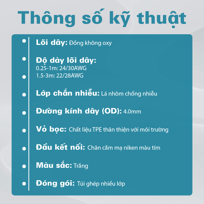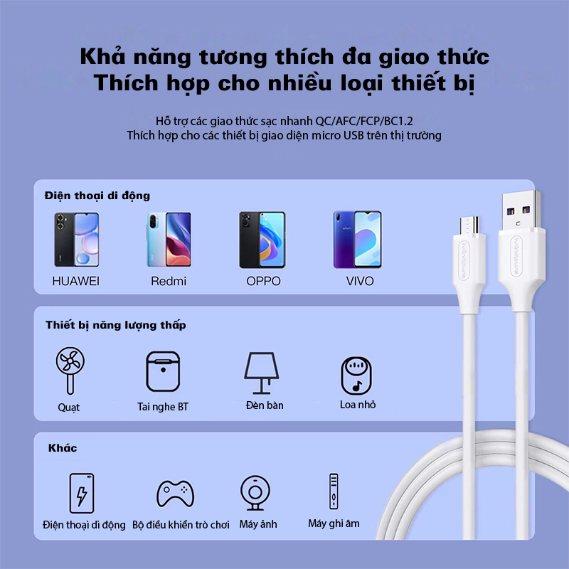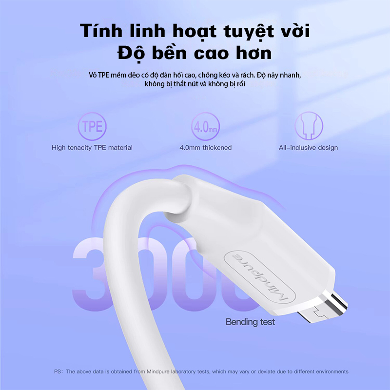 Cấu hình Dây cáp USB to Micro USB 3A Mindpure US026