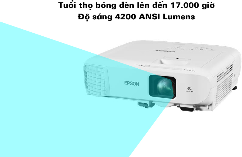 Trang bị bóng đèn công suất 230W (UHE) với tuổi thọ lên đến 17.000 giờ ở chế độ Eco, Epson EB-982W giúp người dùng yên tâm sử dụng lâu dài mà không lo tốn kém cho việc thay bóng thường xuyên. Đây là một điểm cộng lớn về chi phí vận hành và bảo trì.