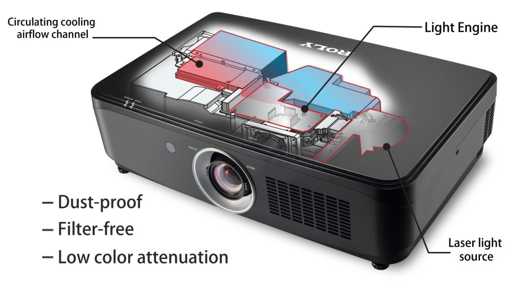 Máy chiếu Laser Roly RL-H700U là dòng máy chiếu cao cấp với độ sáng mạnh mẽ 7000 Lumens, độ phân giải WUXGA sắc nét và độ tương phản vượt trội. Sản phẩm nổi bật với thiết kế quang học khép kín chuẩn IP6X chống bụi tuyệt đối, kết hợp công nghệ laser bền bỉ 25.000 giờ, mang lại hiệu suất trình chiếu ổn định, lý tưởng cho hội trường lớn, sân khấu và các hệ thống trình chiếu chuyên nghiệp.