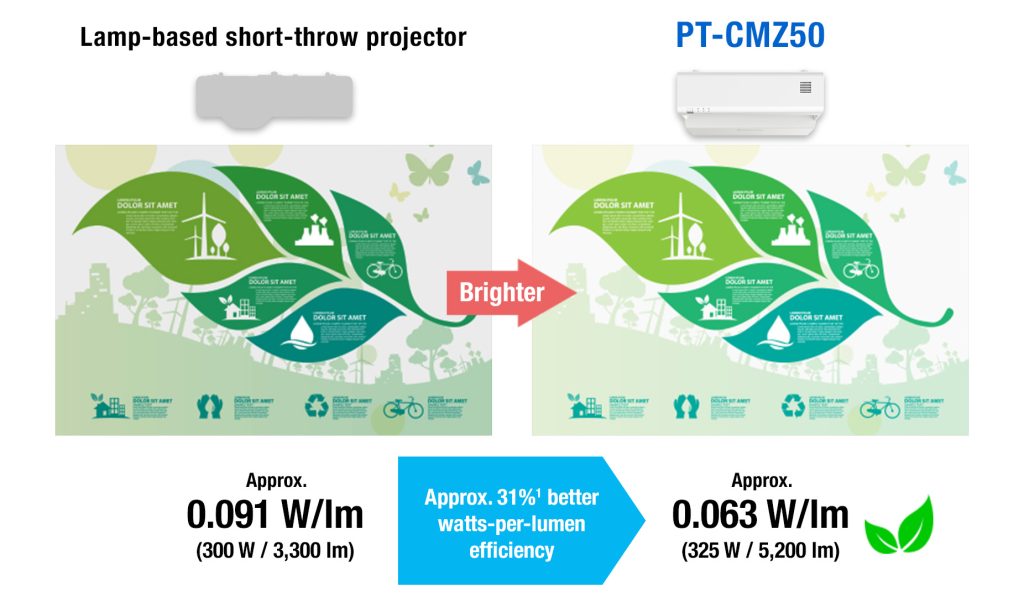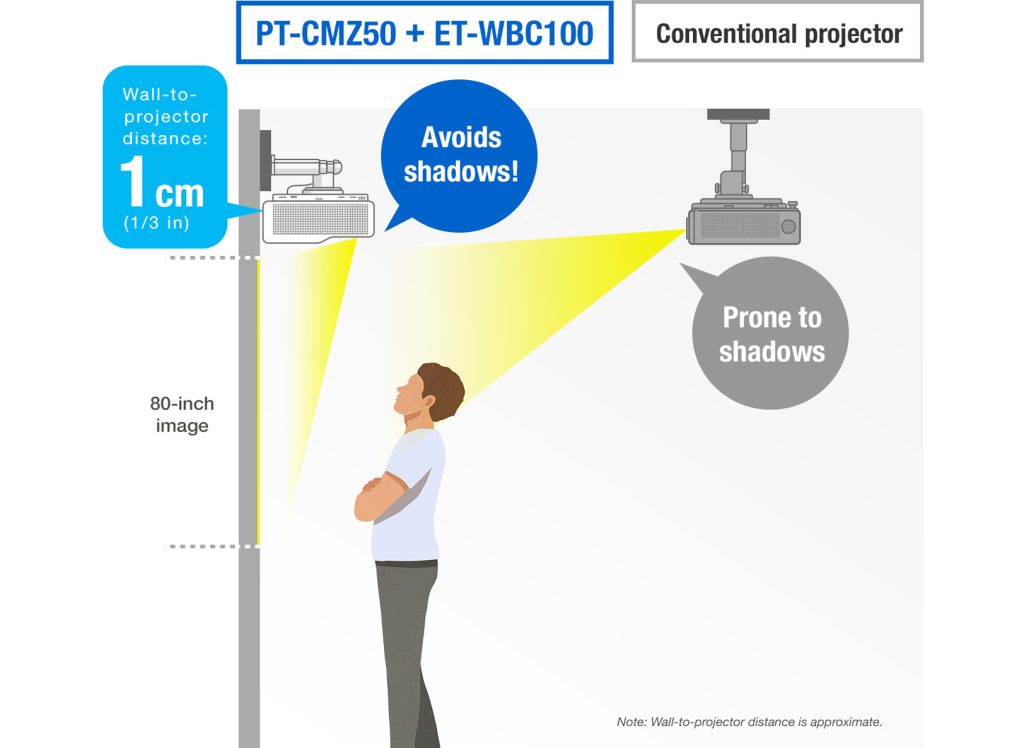 Máy chiếu Panasonic PT-CMZ50 là dòng máy chiếu laser siêu gần cao cấp, cho phép trình chiếu hình ảnh lớn ngay sát tường mà không bị bóng che. Với độ sáng 5200 Ansi Lumens, độ phân giải WUXGA và khả năng hỗ trợ tín hiệu 4K, sản phẩm mang đến hình ảnh sắc nét, sống động trong mọi điều kiện ánh sáng. Thiết kế nhỏ gọn, vận hành êm ái và khả năng lắp đặt linh hoạt giúp PT-CMZ50 trở thành lựa chọn lý tưởng cho phòng họp, lớp học và không gian trình chiếu hiện đại.