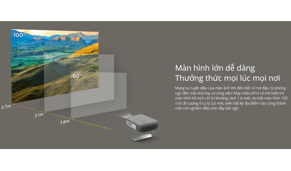 Khả năng chiếu 360° kết hợp với hiệu chỉnh keystone ngang/dọc và chỉnh 4 góc cho phép bạn trình chiếu hình ảnh hoàn hảo lên tường, trần nhà hay bất kỳ bề mặt nào. Dù đặt trên tủ đầu giường hay mang ra ngoài trời, M1X vẫn đảm bảo hình ảnh cân đối và dễ nhìn.