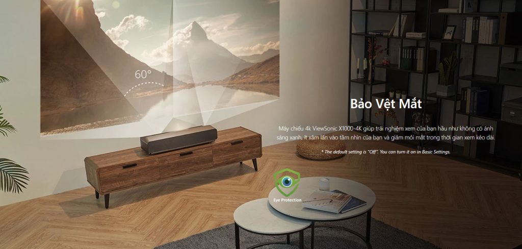 Máy chiếu ViewSonic X1000-4K+ là máy chiếu 4K HDR siêu gần (Ultra Short Throw) cao cấp, mang đến màn hình 100 inch chỉ cách tường 38cm. Trang bị công nghệ LED thế hệ 2 bền bỉ 30.000 giờ, âm thanh Harman Kardon 40W mạnh mẽ, kết nối WiFi – Bluetooth thông minh và tính năng bảo vệ mắt tiên tiến, sản phẩm là lựa chọn hoàn hảo cho không gian giải trí gia đình hiện đại.