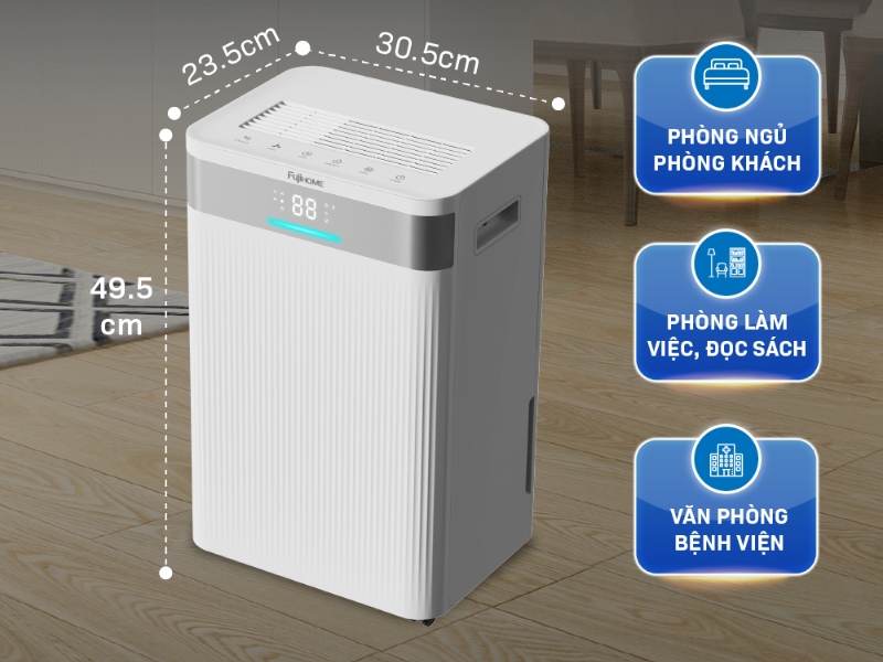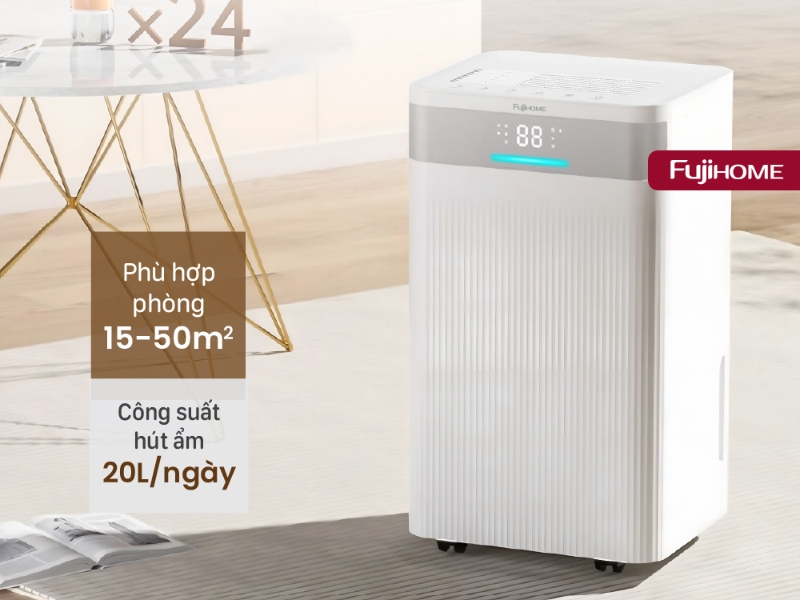 Fujihome DH20NW là lựa chọn lý tưởng cho gia đình và văn phòng cần một thiết bị hút ẩm mạnh mẽ, vận hành êm ái và điều khiển thông minh từ xa. Với công suất 20 lít/ngày, dung tích bình chứa lớn 4.5L cùng khả năng kết nối WiFi tiện lợi, sản phẩm giúp duy trì không gian luôn khô thoáng, bảo vệ sức khỏe và nội thất trong điều kiện thời tiết ẩm kéo dài.