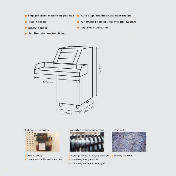 Máy có thiết kế chuyên dụng với trọng lượng 480kg, kích thước lớn, phù hợp lắp đặt cố định trong kho lưu trữ hoặc khu vực tiêu hủy chuyên biệt. Công nghệ từ Đức giúp máy hoạt động ổn định, bền bỉ theo thời gian.