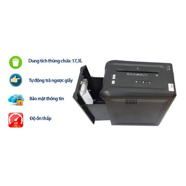 Với dung tích thùng chứa lên đến 31,4 lít, máy cho phép lưu trữ nhiều giấy vụn hơn, hạn chế tình trạng phải dừng máy để đổ thùng thường xuyên – phù hợp với môi trường làm việc đông người.