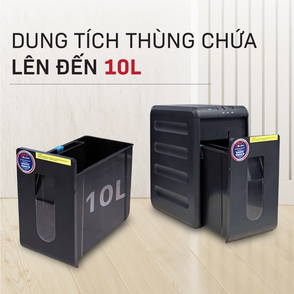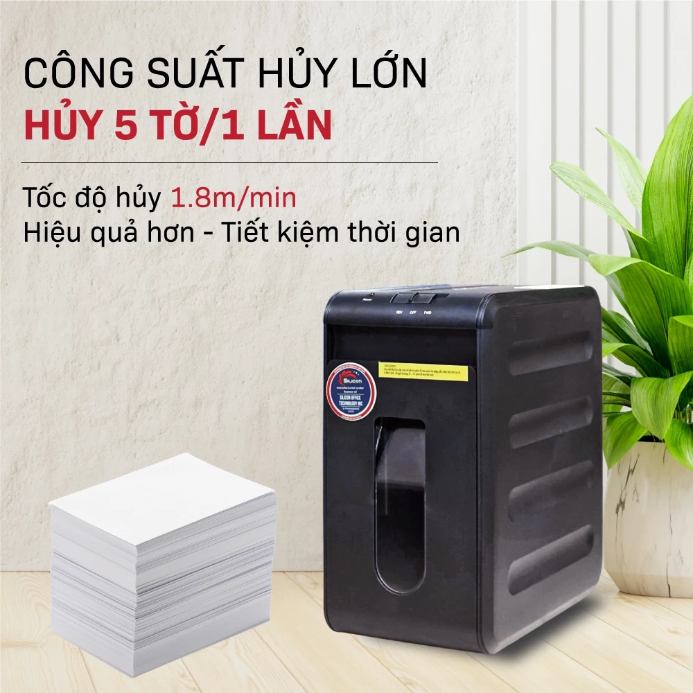 Máy huỷ tài liệu Silicon PS-1005C là dòng máy hủy tài liệu mini nhưng được trang bị đầy đủ các tính năng cần thiết như tự động hủy, chống kẹt giấy và bảo vệ quá tải. Với khả năng hủy vụn kích thước nhỏ, máy giúp đảm bảo an toàn thông tin cho doanh nghiệp và cá nhân trong quá trình xử lý tài liệu.